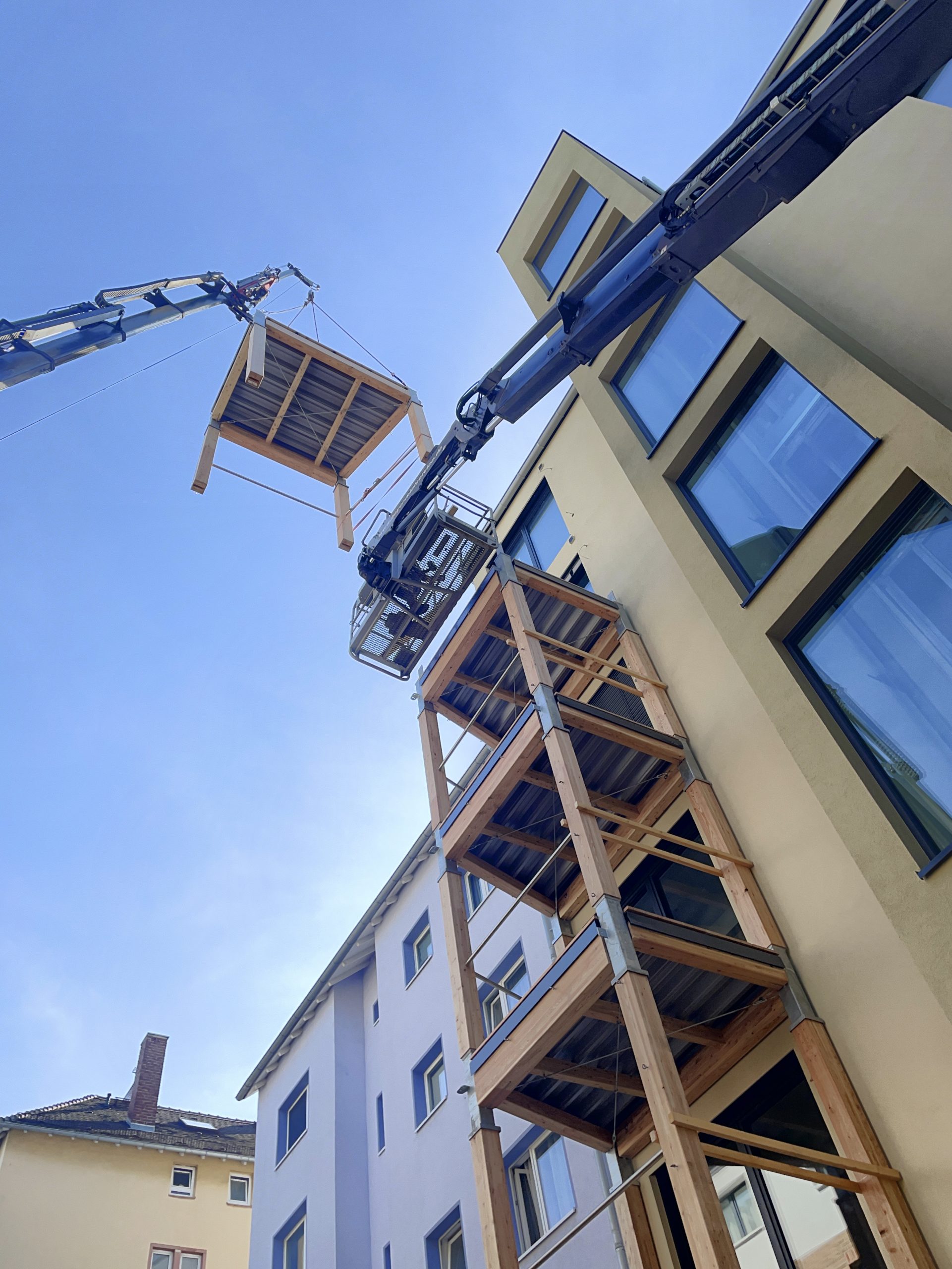 Holzbauweise, die Maßstäbe setzt. Auch Aufzug und Balkone sind in Holzbauweise erstellt worden.