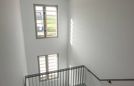 So entsteht gerade ein hochenergieeffizientes, nachhaltiges Mehrfamilienhaus mit 8 Wohneinheiten, jeweils mit Loggia oder Terrasse. Die 3- und 4-Zimmer Wohnungen sind barrierefrei und 67 m² bzw. 100 m² groß.